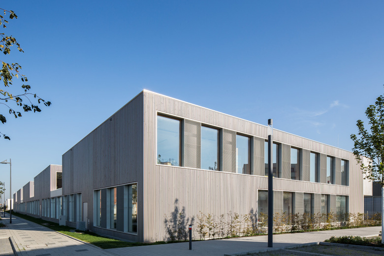 Die Gebäude Grundschule, Sporthalle mit Schwimmbad, sowie die Kindertageseinrichtung werden als separate, eigenständige zweigeschossige Körper geplant.