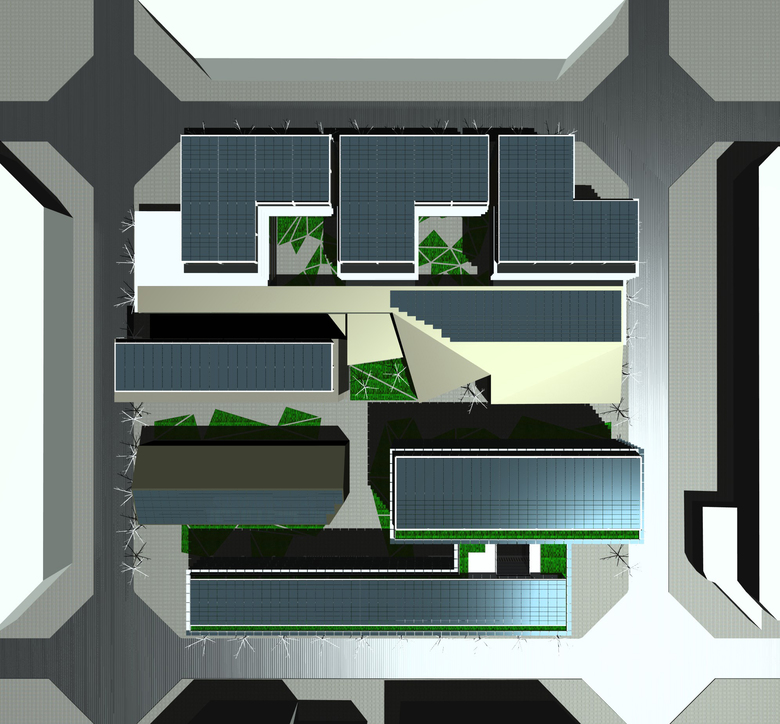 El proyecto, situado en el distrito tecnológico 22@ del Ensanche Cerdà de Barcelona, desarrolla la primera manzana energéticamente autosuficiente de la ciudad. Este objetivo de autosuficiencia determina la propia concepción de la distribución de los volúmenes, concretada a través del planeamiento urbanístico específico.