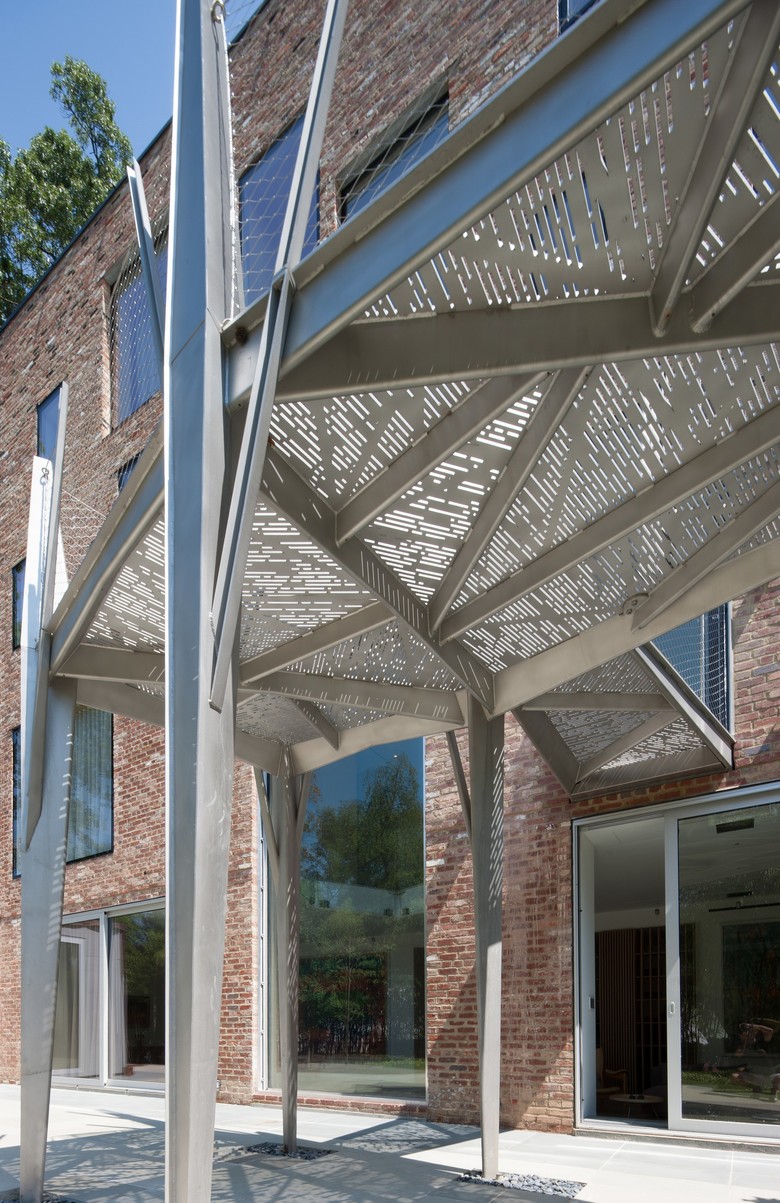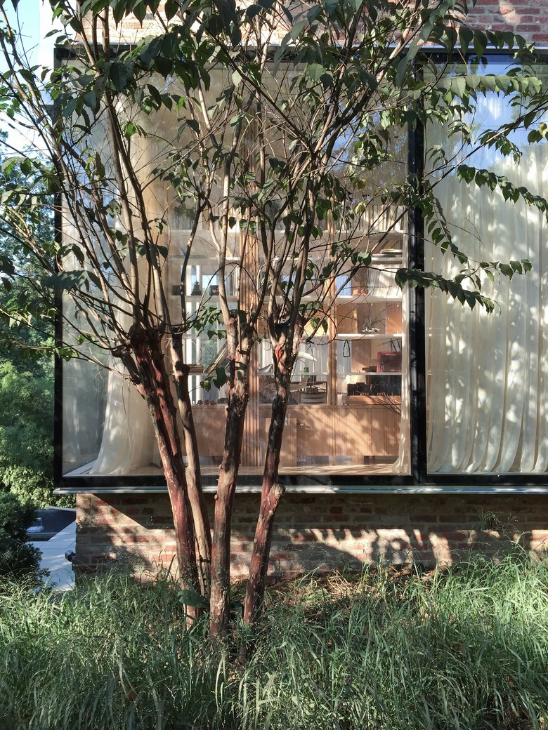 The Rock Creek House is an adaptive re-use project of a 1920’s brick structure that was originally composed of two floors, with a mechanical basement and attic. This adaptation leverages the robustness of the existing structure to capture the attic and basement to double the house’s size, while expanding its functions into the landscape. While the northern street façade remains relatively intact --formal, insular, and composed-- the southern exposure to Rock Creek is made more generous. By expanding the areas of glazing and establishing a more precise relationship between rooms and their respective apertures, a new architectural order is established on the south – more informal, open and in dialogue with nature.