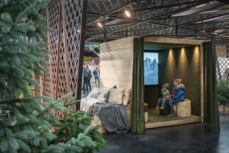 The cubes can be used in different ways. For example, at the "Berlin Travel Festival", in one of the cubes an artisan carved a delicate female figure from a rough tree-trunk, in another a renowned chef delighted the guests with exclusively local dishes and ingredients and in the third a series of documentaries told the stories of various characters from the region. The idea of entering the pavilion is reminiscent of a journey through South Tyrol, in which forms, flavors, traditions and landscapes interact with each other and unfold their stories.