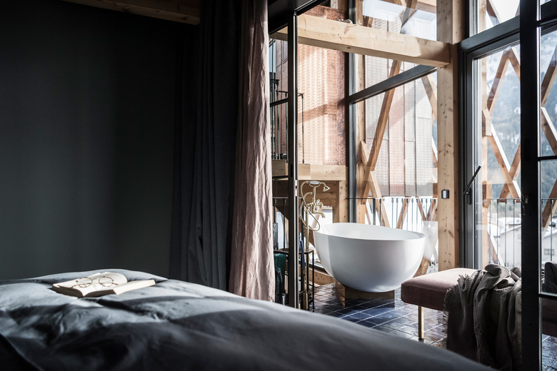 “We wanted the project to respect the aesthetics and the urban aspects of the village, a village where wooden barns alternate with plaster-fronted houses destined for farmers and the keeping of cattle.”, explains architect Rier. “With this in mind, we finished the exterior structure with a ‘coating’ in keeping with tradition: a wooden grid on all 4 sides, just as is used for alpine barns. However, as far as the interior is concerned, I decided to leave tradition behind me, and thereby free the design from any preconceived limitations. In this way I was able to look forward...but also a little back in time to the beautiful years of my childhood”.