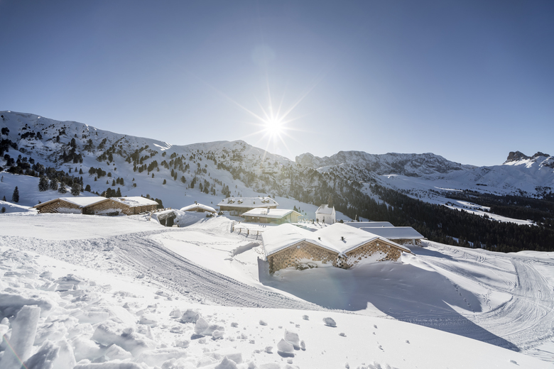 The Zallinger Hut was first built in the middle of the 19th century at 2200 meters, below the Sassopiatto. It was formerly surrounded by seven barns and a small church. Subsequently the barns had been replaced by a single large building (1880), which over time had assumed other functions. The extension was an opportunity to revive the original structure, proceeding, as well as the restructuring of the central body of the hotel, the demolition of the former barn and the construction of seven new chalets arranged respecting the original plan of the site.