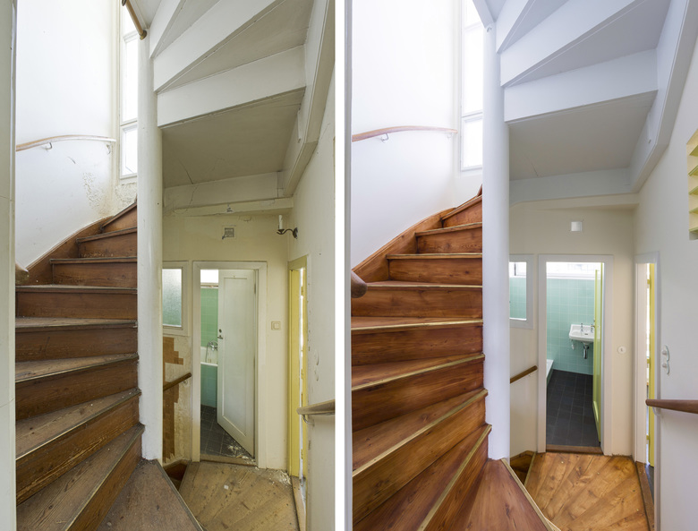 Sanierungsmaßnahmen – Die Sanierungsmaßnahmen umfassten: Die Sanierung und teilweise Freilegung der originalen Putzoberflächen, die Sanierung der Fenster und Türen, die Sanierung von Böden, Wänden und Decken, den Umbau von Badezimmern, die Neuherstellung der Sanitär- und Elektroinstallationen, die Instandsetzung von Geländern und Handläufen sowie die Instandsetzung der Außenanlagen inklusive Zäunen und Gartentüren. In den Rietveld Häusern konnten die von Rietveld ursprünglich angedachten, in Skizzen und Briefen dokumentierten Grundrissvarianten für das Erdgeschoss, die 1932 nicht ausgeführt wurden, nachträglich realisiert werden.
