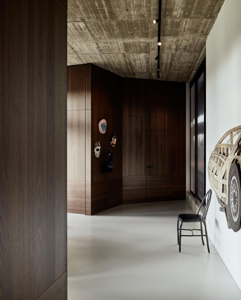 Rich materials and high-quality detailing similarly define the glass-box penthouse structure on the roof, a new addition that develops the European Modernist idiom of the building with a thoughtful contemporary interpretation of its transatlantic incarnation. Originally planned as a two-floor construction, De Ru and Vos changed their design when one of the apartments below failed to sell. The 450m2 penthouse apartment now comprises a one-layer new-build perching on the roof and surrounded by a roof garden, and a portion of the existing building below that roots it in the original structure.