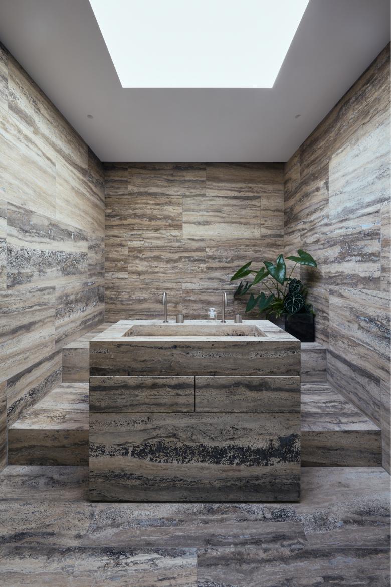 ‘Behind the travertine façade, the inside spaces offer warmth, greater privacy and intimacy.’