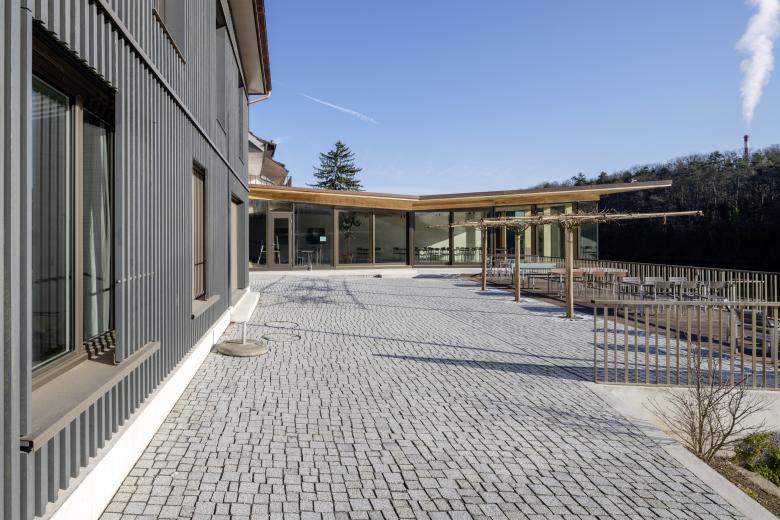 Das Haus am Fahr bildet den Abschluss der Gebäudezeile entlang der Aare. Durch seine Höhe und Dimension kann das Gebäude durch seine Prägnanz als Abschluss funktionieren. Ein öffentlicher Weg führt durch das Gebäudeensemble und belebt dadurch den Aussenbereich neu. So kann Stilli ein schöner neuer öffentlicher Platz direkt oberhalb der Aare zurückgegeben werden.