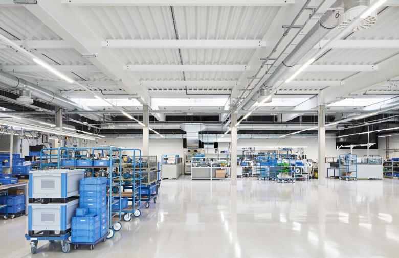 Die Erweiterungsmaßnahme umfasst zwei Gebäudeteile. Einen 3-geschossigen Büroneubau für 65 Mitarbeiter mit Konferenzbereich und die Erweiterung der Montagehalle um ca. 1050 m² Montagefläche.