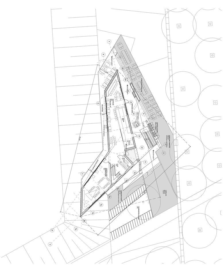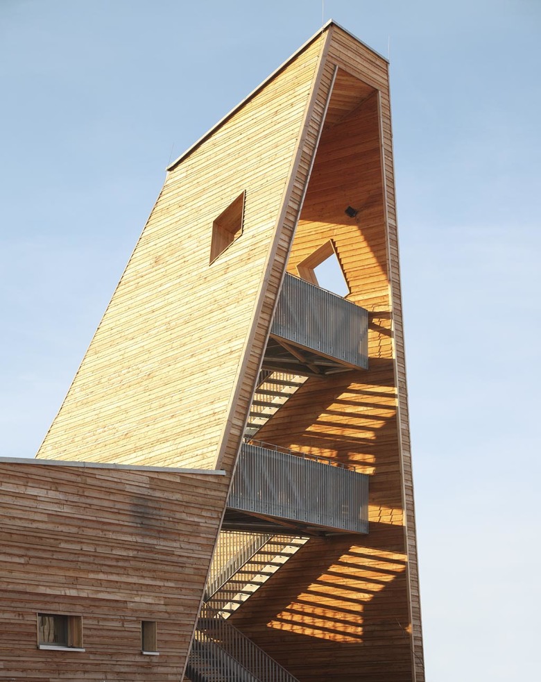 „Die drei Flügel stehen zueinander wie Daumen, Zeigefinger und Mittelfinger einer Hand. Sie markieren die drei Grundrichtungen im Raum in x, y und z Richtung und damit die Grundvoraussetzung jeder Architektur als eine Ausdehnung im Horizontalen und Vertikalen - Erde und Himmel.“ Bernhard Franken