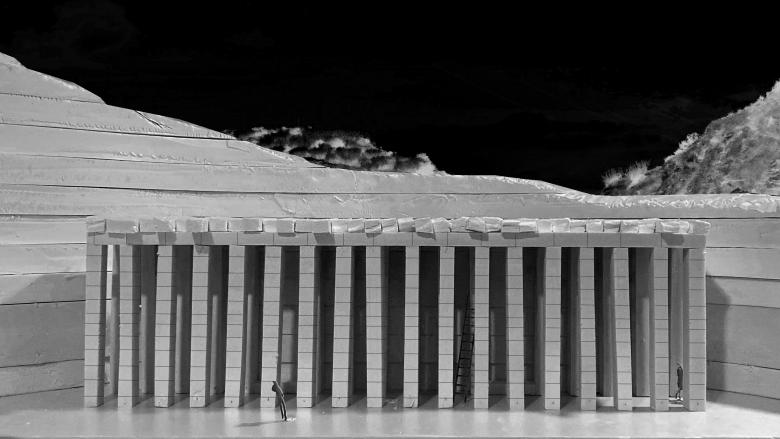 Among them, the Can Rovira quarry stands out as the only one that is dead. Silence. Life. The project revolves around the symbolic construction of a monument through the ritual of death, evoking a link between an industrial past and a quieter, more humane future.