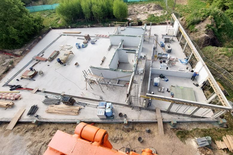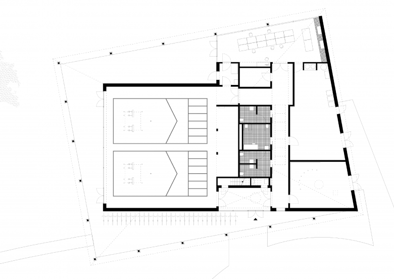 To help expand the world of these children, who are often limited in movement and therefore experience very little change of scenery, it was a conscious decision to detach the additional sports- and crafts rooms from the main building. Organized in a new garden pavilion, the expansion sits freely in the midst of an untouched meadow, encircled by trees and small ditches. From the different rooms, one looks back at either the school and the playgrounds or the surrounding meadow.