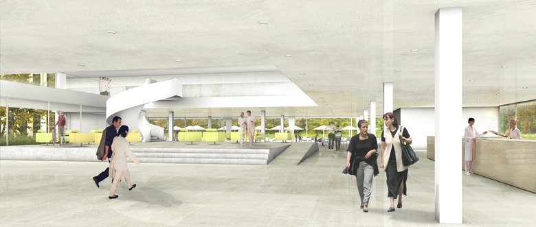 Das Kantonsspital Winterthur wurde ursprünglich als Klinik in einem weitläufigen Park geplant. Über die Jahrzehnte haben sich jedoch folgerichtig die Gebäudestrukturen den wachsenden Bedürfnissen angepasst. Mit der Parkplatznutzung ist der Park als Grüngürtel kaum mehr ablesbar und in seiner Bedeutung stark eingeschränkt. Der Entwurfsgedanke baut auf dem ortsspezifischen Kontext von Landschaft und Siedlungsraum auf. Die bestehenden und zukünftigen Gebäude werden typologisch zu einem Gesundheitszentrum mit grosszügiger Parkanlage vereint. Neben der klaren Entflechtung von Erschliessungsflächen und Grünbereichen wird ein flexibles Entwicklungspotential für das Kantonsspital Winterthur aufgezeigt. Die Anordnung der einzelnen Funktionsbereiche des Ersatzneubaus folgt den geforderten Funktionsbeziehungen und berücksichtigt die Situation in den Bestandsgebäuden sowie der notwendigen Anbindung an die übergeordneten Verkehrswege mit einer guten Orientierung für Patienten, Personal und Besucher.
