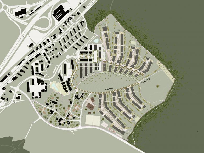 „Jeder wohnt am Grünen“. Das Motto des Masterplans wurde in diesem Wettbewerbsbeitrag zur Erstellung von gut 475 Wohnungen in Köniz nahe Bern konsequent umgesetzt. Durch die Verzahnung von Baufeldern und Grünfingern wird die Landschaft zur Wohnungsumgebung gemacht. Das Äussere der Baufelder wird klar geschnitten, maximal privatisiert und gegen die Grünfinger abgegrenzt. Das Innere hingegen ist plastisch, von öffentlich zu privat fein abgestuft und ermöglicht eine differenzierte Aneignung durch die Bewohner.