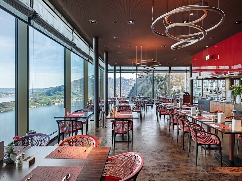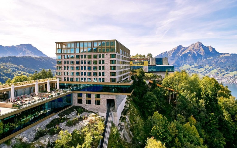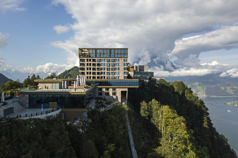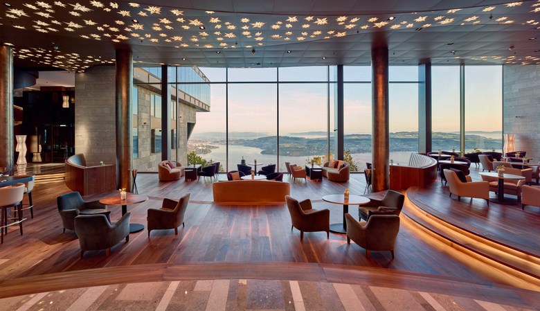 Das neue Bürgenstock Hotel 5* Superior bildet heute das Herzstück und damit den zentralen Anziehungspunkt des Bürgenstock Resorts. Der imposante Baukörper fügt sich natürlich zwischen das Hotel Palace und das Bürgenstock SPA ein und orientiert sich Richtung Norden nach Luzern. Das Gestaltungskonzept des neuen Hotels und dessen Inneneinrichtung ist an Szenenbilder legendärer Filme angelegt. Mit dem Planungsentwurf «Goldfinger» hat unser Team von Rüssli Architekten den Architekturwettbewerb 2010 gewonnen.