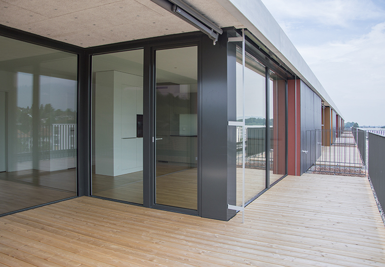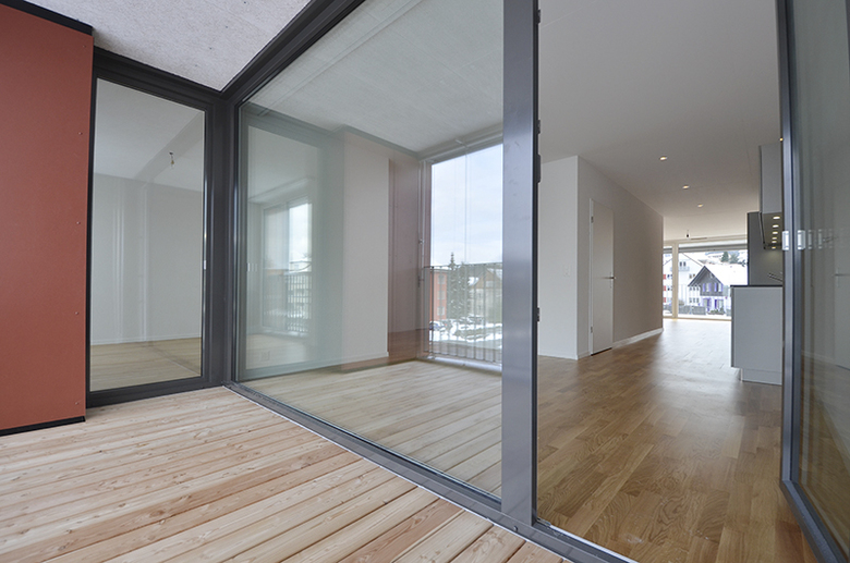 Der Kopf des neuen Volumens bietet im Erdgeschoss eine publikumsortientierte Nutzung und schlägt damit die Brücke zum Zentrum von Köniz. Die Obergeschosse stehen für Wohnnutzung und teilweise für Dienstleistungen zur Verfügung.