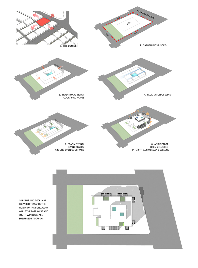The house is planned to allude to the traditional Indian courtyard house in response to the climate of the location. Temperatures in the lengthy summer months are in excess of 35° C, with the sun in the southern hemisphere.