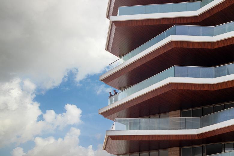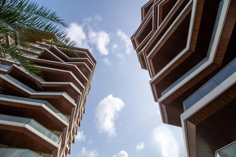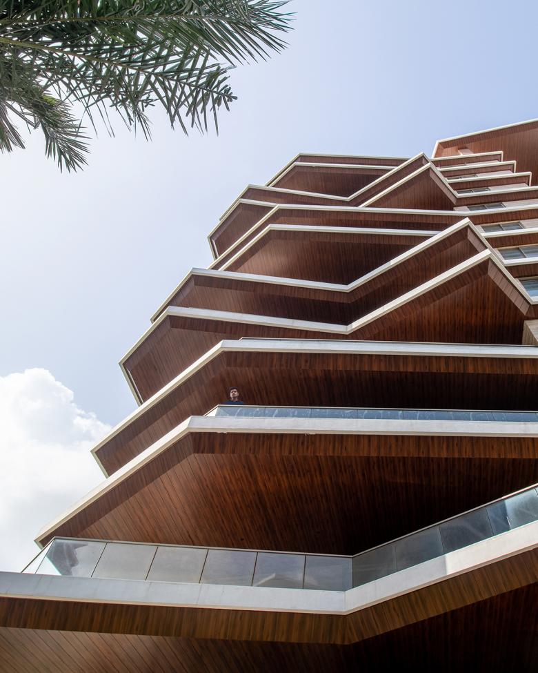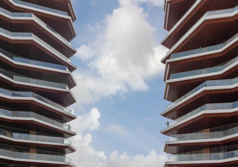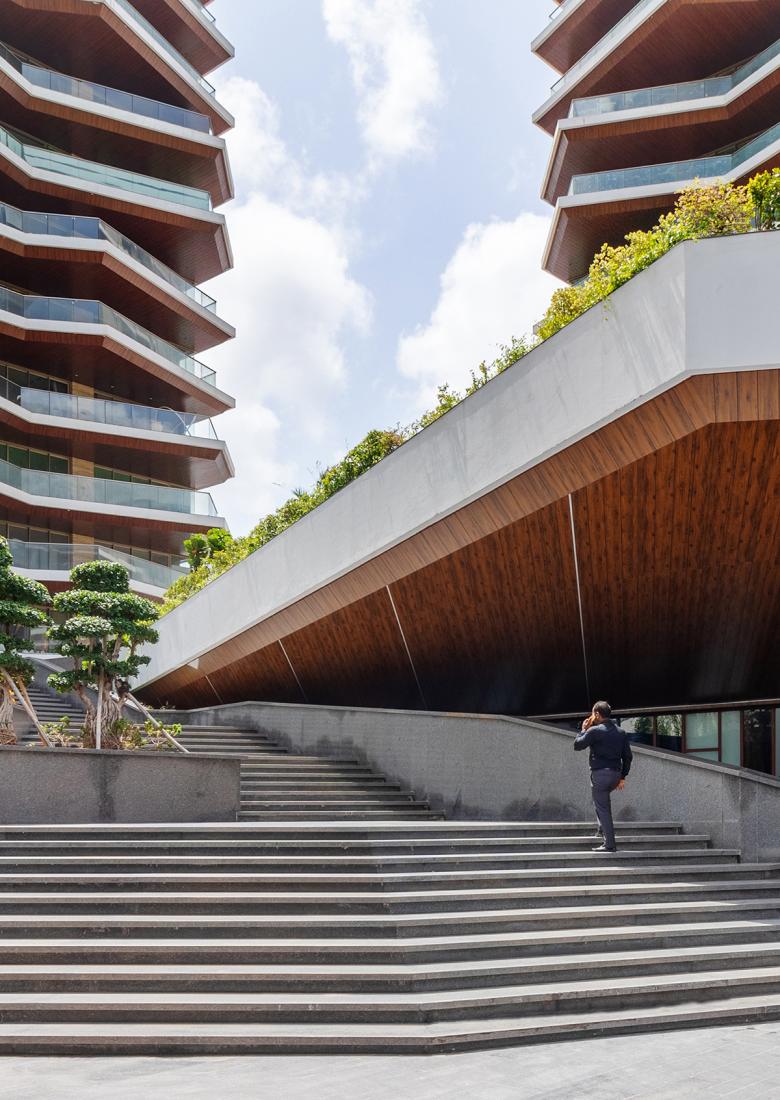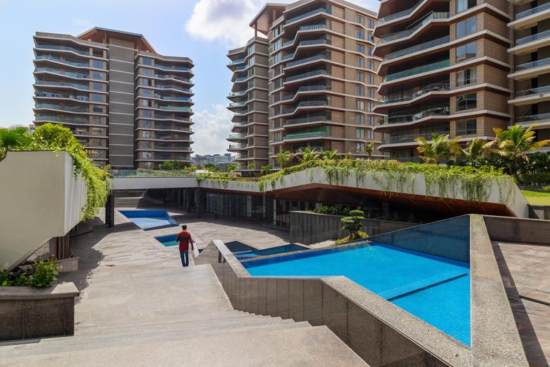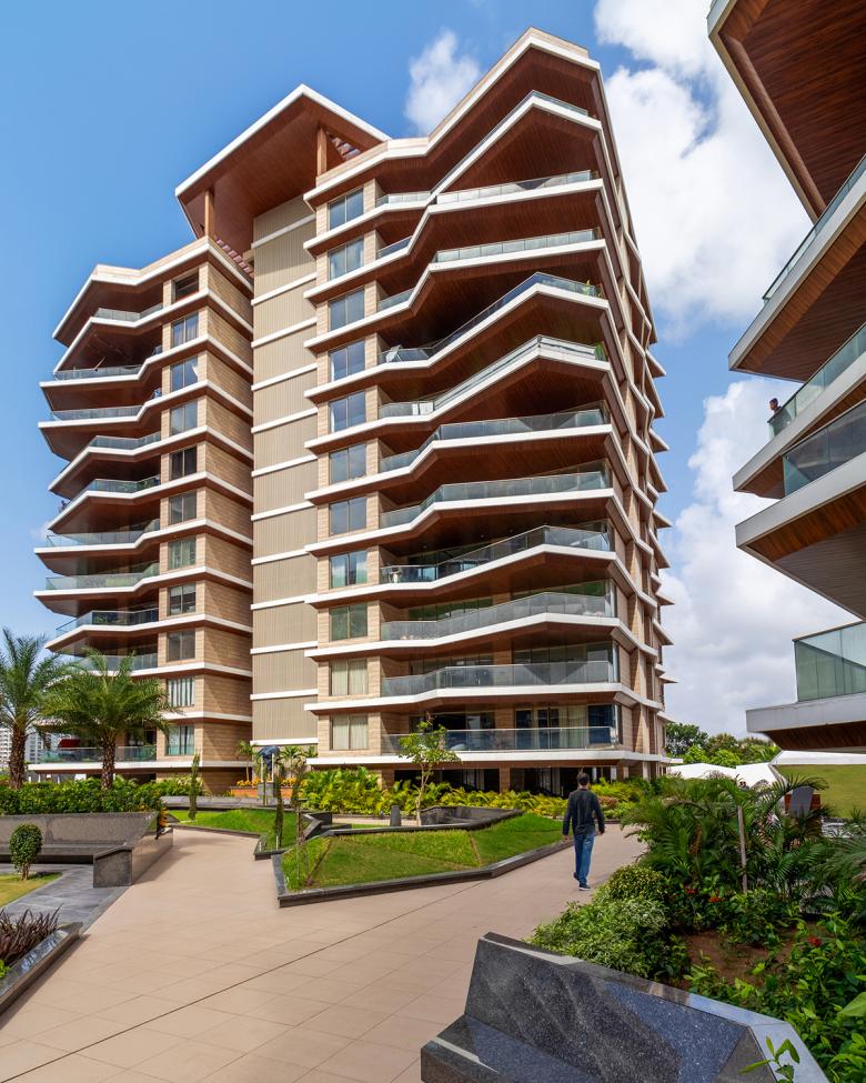 The extensive landscaping with trees, plants, and water bodies helps in passive cooling. The large overhangs & outdoor decks to each apartment reduce heat gain whilst adding individual outdoor spaces.