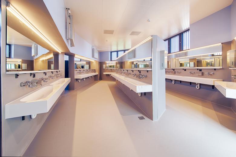 Denkmalpflegerisch bedeutende Gesamtsanierung der per erstem Bundesbeschluss der Eidgenossenschaft erstellten Mannschaftskaserne 1 in Thun.