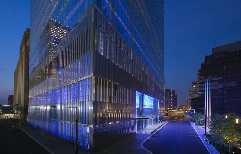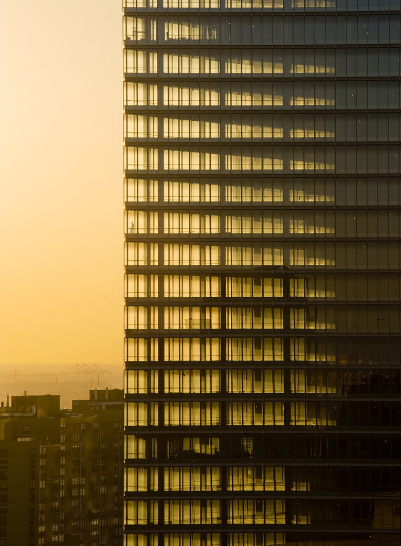7 World Trade Center heralds the spirit of redevelopment and renewal in Lower Manhattan after September 11, 2001. The fifty-two-story, 1.7-million-square-foot glass pylon marks the entrance to the World Trade Center and, with its clarity of design and sustainability features, establishes a benchmark for future buildings on the site. Pulling back from its eastern property line, the tower creates a view corridor to the tip of Manhattan, letting in light where previously none existed. From the exterior, the surface of 7 WTC is a study in reflected color and light calibrated to create the illusion of depth and animated with light. With the variation of shifting daylight and sky conditions, this large glass expanse appears organic and lively.