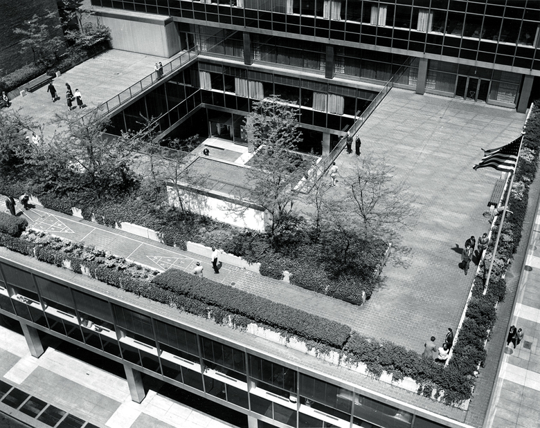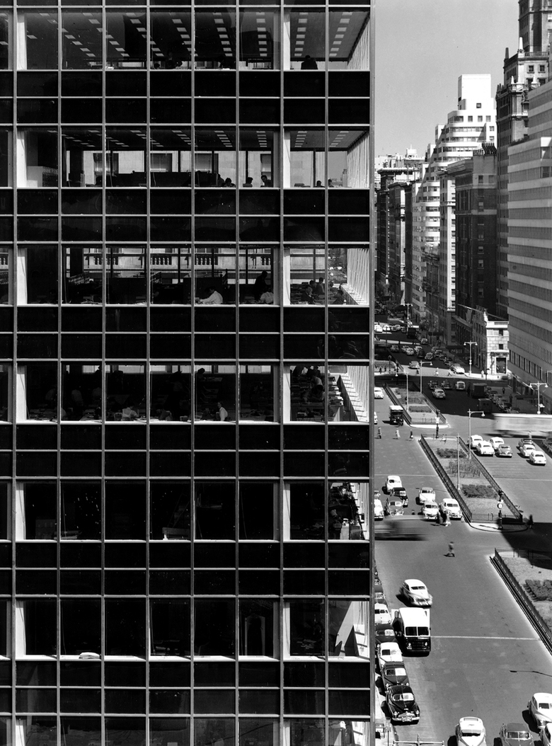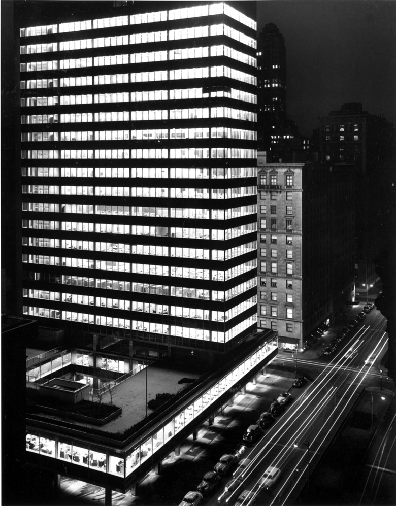 Midtown Manhattan’s Lever House marked a watershed in U.S. architecture when completed in 1952. Located on the west side of Park Avenue between 53rd and 54th Streets, the corporate headquarters—with its façade of blue-green glass and stainless steel mullions—was one of the first glass-walled International Style office buildings in the U.S.