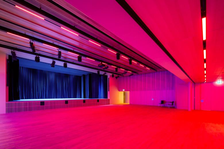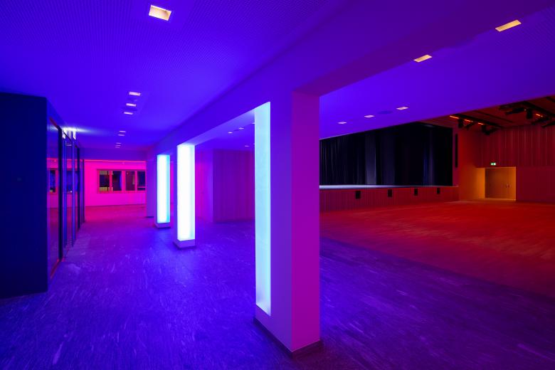 Der Einsatz von RGBW-Beleuchtung und die Kombination von Flächen- und Akzentbeleuchtung schaffen die Möglichkeit, sowohl festliche Feiern als auch Tagesveranstaltungen wie Konferenzen durchzuführen.