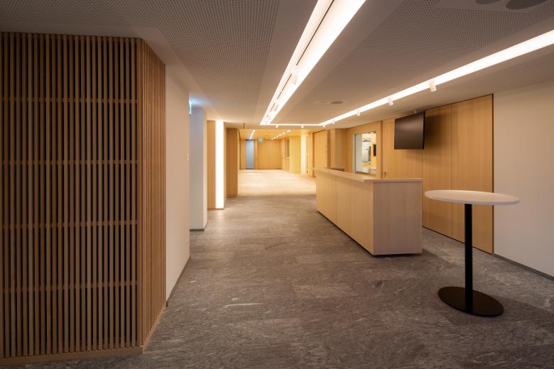 Die Leuchten sind in den Hintergrund integriert und betonen die Architektur auf subtile Weise.
