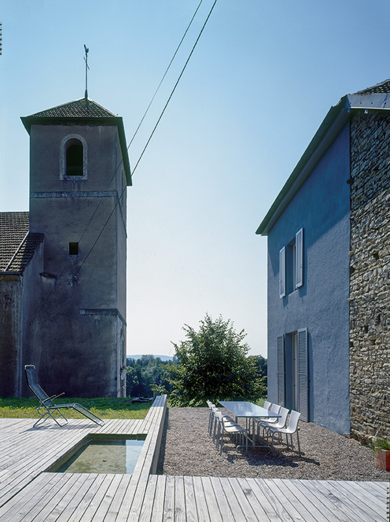 Thiénans, ein kleines Bauerndorf, liegt ca. 50 km südwestlich von Belfort in der sanften Hügellandschaft der Franche-Comte. Das Haus, ein ehemaliges Pfarrhaus, steht am Ende des Dorfes als letztes Haus unmittelbar neben der Kirche, die heute als „mairie“ (Rathaus) genutzt wird. Das Gebäude ist nach Südwesten ausgerichtet. Die Fenster öffnen sich auf eine tieferliegende Ebende, die von einem stark gewundenen Fluss geprägt wird. Mit Rücksicht auf die bestehende Bausubstanz wurde das alte Pfarrhaus anhand eines einfachen und funktionalen Konzepts umgebaut.