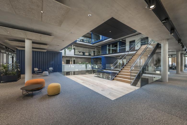 Die Zentrale ist Teil des BODNER Campus, der im Endausbau aus vier Gebäuden bestehen wird. Das architektonische Konzept des Gebäudes zeichnet sich durch massive, markante Strukturen aus. Damit wird auf die Wurzel und die Geschichte des Bauherrn und sein Kerngebiet als Bauunternehmen hingewiesen. Das äußere Erscheinungsbild zeigt Elemente von Rohbaustrukturen in Form von grob geschnittenen Deckenrändern und Assoziationen von Baustellen‐Containern im bekannten BODNER‐Blau. Durch präzise Detailausbildungen von Verglasungen, Fertigteilverkleidungen und Fensterelementen erzeugt die Baustellenthematik im neuen Kontext ein spannendes und identitätsstiftendes Erscheinungsbild. Das Gestaltungskonzept zieht sich von der Fassade in den Innenraum. Hier dienen die Container‐Boxen als Rückzugsräume und Besprechungskojen und zeigen sich in freier Anordnung im überdeckten Atrium.