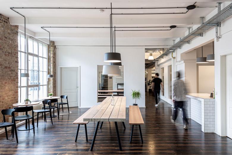 The Berlin offices of Marley Spoon are located in a former factory building. They were designed to be open and flexible, offering gathering and relaxation spaces, as well as spaces for conferences and concentrated work.