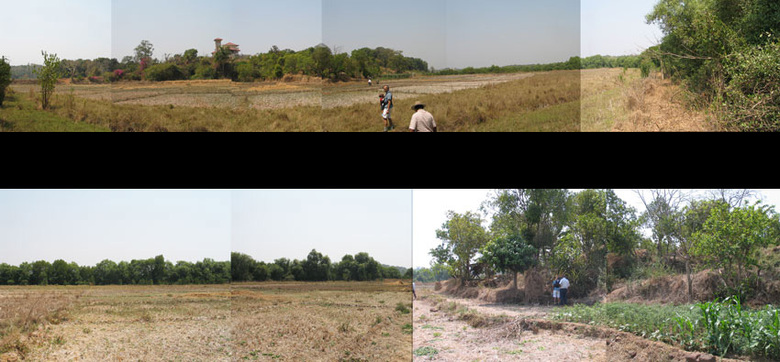 A set of three vacation homes were designed for a three friends, on a sloping site overlooking paddy fields and a tributary of the Mandovi river near Aldona in Goa. The site was located on an erstwhile cashew plantation. The project sought to maximize the beautiful vistas from within each individual unit while at the same time preserving the natural landscape of the site.The residential units, with their horizontal plinths floating above the ground to create a level datum, and lightweight roofs were thought like tents on a camping site. The houses were clustered around a central garden courtyard, envisaged as a perfect place for enjoying a meal or socializing with friends while on vacation.