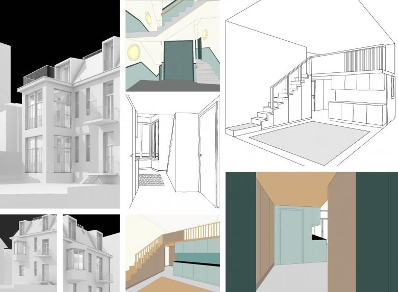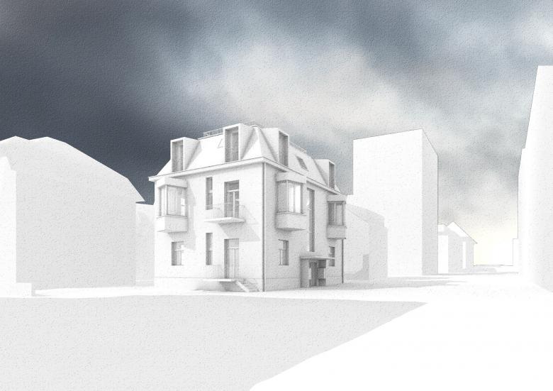 «In der Bauklasse E hat sich ein Neu- oder Umbau an den Standort und die Volumetrie des bestehenden Baukörpers zu halten.», so sagt es die Bauordnung der Stadt Bern. Der Bestandesbau an der Schwarztorstrasse 75 befindet sich in eben dieser Bauklasse «E», ist aber in einem solch schlechten Zustand, dass eine Sanierung verworfen werden musste. Somit sind wir mit der spannenden Aufgabe konfrontiert, einen Neubau in der Volumetrie des Bestandesbaus zu entwickeln. Dafür müssen wir eine architektonische Haltung im Spannungsfeld zwischen historisierend und interpretierend finden.