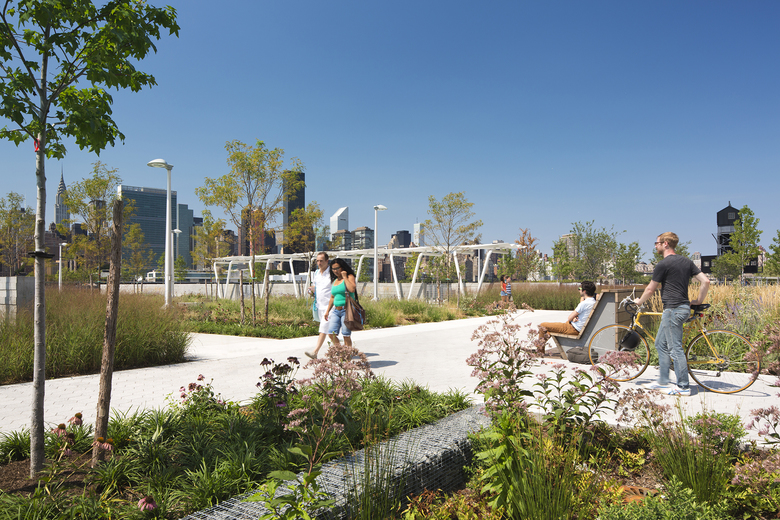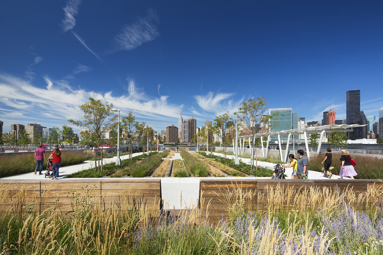 Hunter’s Point South is envisioned as an international model of urban ecology and a laboratory for innovative sustainable thinking. The project is a collaboration between Thomas Balsley Associates and WEISS/MANFREDI as co-designers of the Open Space and Park and Arup as the Prime Consultant and Infrastructure designer.