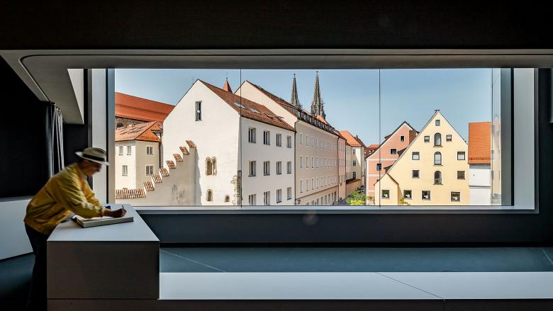 Die Höhenentwicklung und die Dachlandschaft des Museumskomplexes orientieren sich am Maßstab der donauseitigen Bebauung und an der vorgefundenen mittelalterlichen Dachstruktur der Regensburger Altstadt.