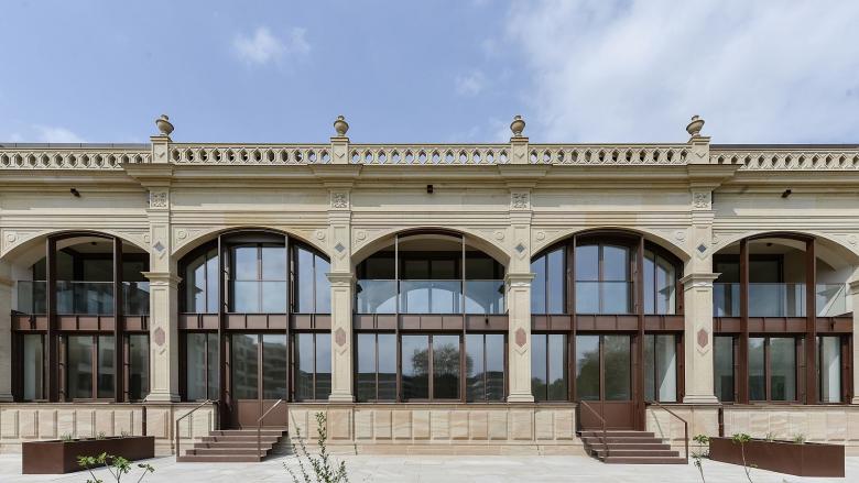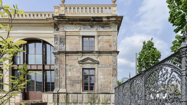Die im Jahr 1841 im Stil der florentinischen Neorenaissance errichtete Orangerie "An der Herzogin Garten" wurde im Zweiten Weltkrieg so stark zerstört, dass nur der straßenseitige Kopfbau als Artefakt erhalten blieb. Erst im Jahr 2019 konnte der Wiederaufbau des Gebäudes als ein architektonisch und städtebaulich bedeutsamer Punkt im Dresdner Stadtbild vollendet werden. In enger Zusammenarbeit mit dem Landesamt für Denkmalpflege wurden Kopfbauten und Gartenfassade nach alten Plänen rekonstruiert. Heute sind in dem Gebäude zwölf großzügige Wohnungen und in den beiden Kopfbauten Gewerbeeinheiten untergebracht. Die besonderen Qualitäten der Innenräume sind ihr Bezug zu der weitläufigen Parkanlage und ihre Ausblicke in den Zwingerpark -tiefe Loggien und Balkone bieten die nötigen privaten Rückzugsorte. Insbesondere die eleganten bronzierten Fensterelemente zwischen den zweigeschossigen Sandsteinportalen zeugen von der Verbindung zwischen Historie und Moderne. Die Straßenseite mit den Zugängen zu den Apartments zeigt sich mit einer zurückhaltenden, hochwertigen Fassade aus Putzflächen, Sandstein- und Bossenelementen. Neben der Orangerie wurde auch „Der Herzogin Garten" nach historischem Vorbild rekonstruiert und für die Öffentlichkeit geöffnet und ist inzwischen ein attraktiver Anziehungspunkt für die Dresdner und ihre Gäste.
