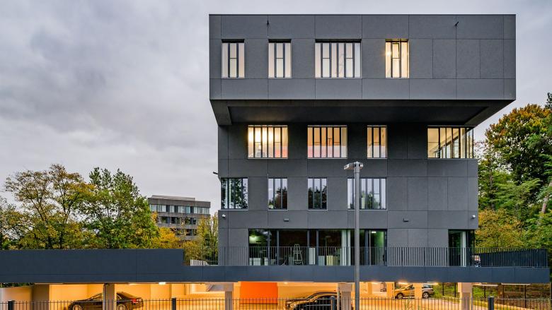 Neben den eigentlichen Büroflächen bietet das neue Haus Tiefgaragenplätze, Besprechungszonen, Denkboxen, Steharbeitsplätze, Café-Ecken, Lounges, Freilufträume, einen kreativen Entwicklungsbereich und auf allen Arbeitsebenen übers Jahr eine Baumkulisse in saisonalen Farben zum Anfassen.