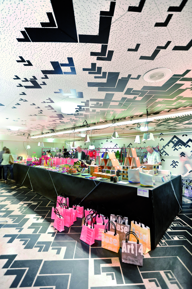 Während der Art|40|Basel nistet sich der ArtShop als temporäre Designboutique in einer Garderobe der Messehallen ein. Eine lange Treppe trennt ihn von den Besucherströmen. Der gestalterische Eingriff zielt zum einen darauf ab, das Publikum anzulocken noch bevor es den eigentlichen Shop sehen kann, und zum anderen darauf, eine unattraktive Garderobe in eine temporäre Designboutique zu verwandeln.