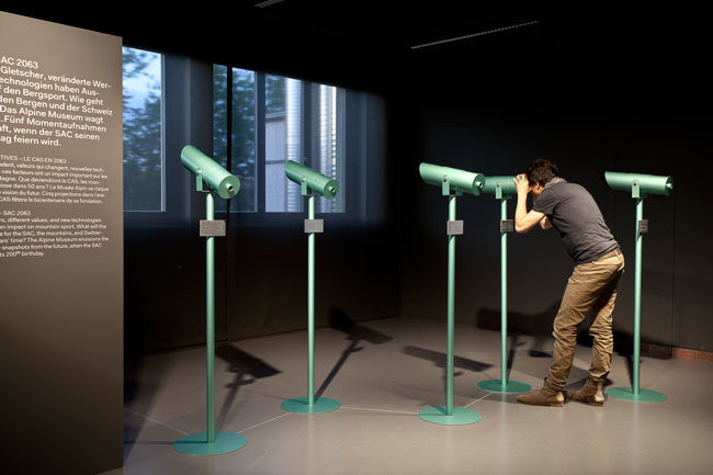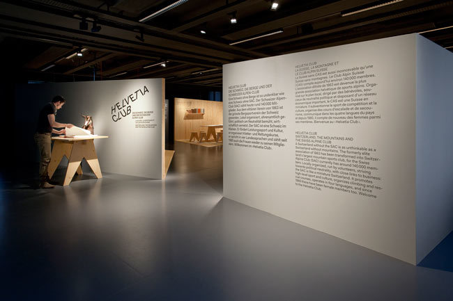 Die Ausstellung «Helvetia Club. Die Schweiz, die Berge und der SAC» blickt 150 Jahre nach der Gründung des SAC zurück und nach vorne. Das Museum verwandelt sich in eine geschichtenreiche Berghütte mitten in der Stadt. Die Ausstellung erzählt in Aufenthalts-, Material- und Schlafräumen von Gipfelgefühlen und Talabfahrten, von Kameradschaft und Konflikten, von Frauenfragen und Umweltsorgen. Die vier Stubenfragemente beleuchten Konflikte, Vereinsstruktur, Seilschaften und Statistisches des SAC. Im Holdersaal vereinen sich alle 152 SAC-Hütten zu einer schwebenden Topografie. Auf den Kissen im Massenschlag liegend kann man persönlichen Portraits von SAC-Mitgiedern lauschen.